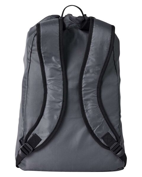 Ripstop polyester Drawcord closure for main compartment Front zippered pocket Padded backpack straps