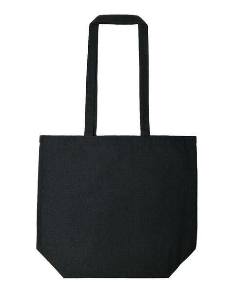 75/25 recycled cotton/recycled polyester canvas 32" self-fabric handles Gusseted bottom Non-branded label/tag
