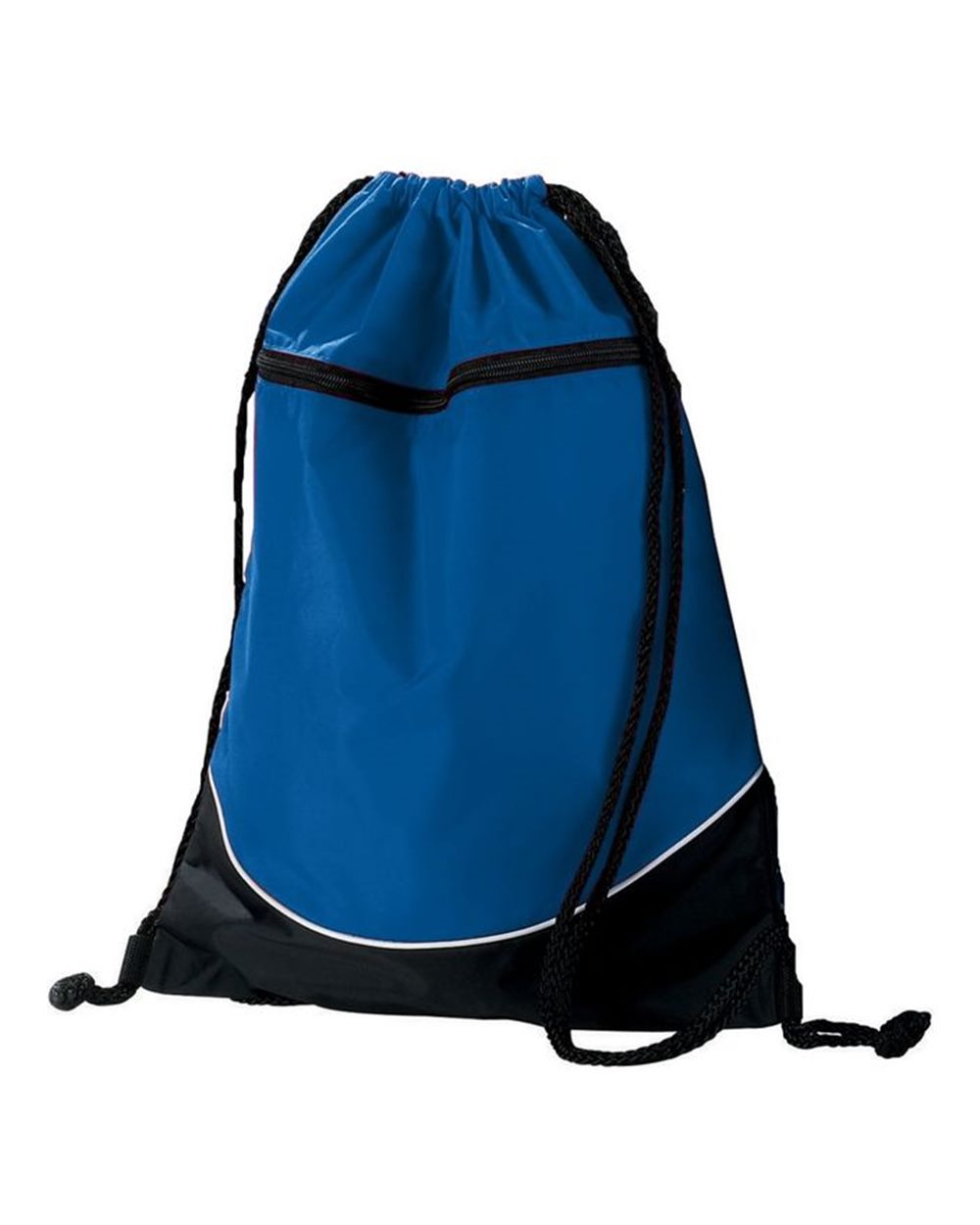 210D nylon with PU coating Hemmed top with drawcord closure Zippered front pocket Black bottom with white accent piping Web tab at bottom corner for...