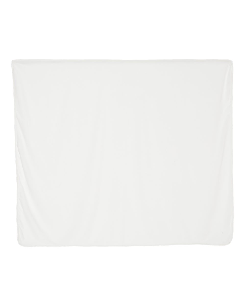 8.5 oz./yd_, 100% polyester Lightweight and velvety soft micro coral fleece Fully hemmed with matching polyester tricot binding Non-branded label/tag...