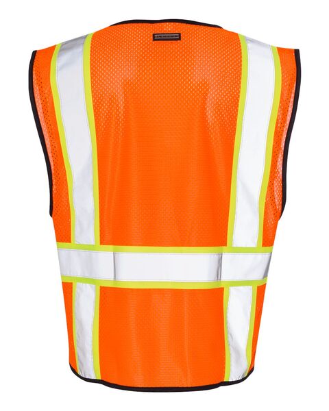 100% polyester mesh Plastic zipper front closure 2Ó wide reflective material with 3Ó contrast-color Left chest mic tab Left chest pocket Lime...