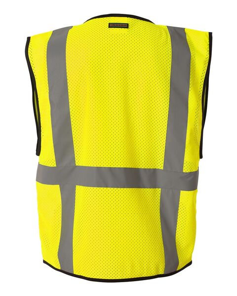 100% polyester mesh material with solid polyester pockets Plastic zipper front closure 2Ó wide reflective material Left chest mic tab Two lower...
