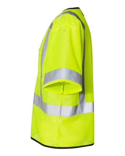 100% polyester mesh Plastic zipper front closure 2" wide reflective material Left chest mic tab Left chest pocket ANSI/ISEA 107 2015 /...