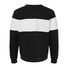 8 oz./yd_, 60/40 cotton/polyester sueded fleece Coverstitched throughout V-notch ribbed crewneck Ribbed cuffs and bottom hem Tear away label