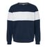 8 oz./yd_, 60/40 cotton/polyester sueded fleece Coverstitched throughout V-notch ribbed crewneck Ribbed cuffs and bottom hem Tear away label