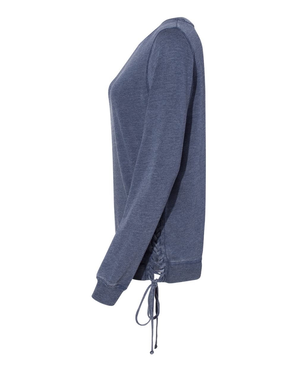 6.5 oz./yd_, 60/40 cotton/polyester enzyme-washed fleece Ribbed neckband, sleeve cuffs, and bottom band Forward side seams Lace up detail on the left...