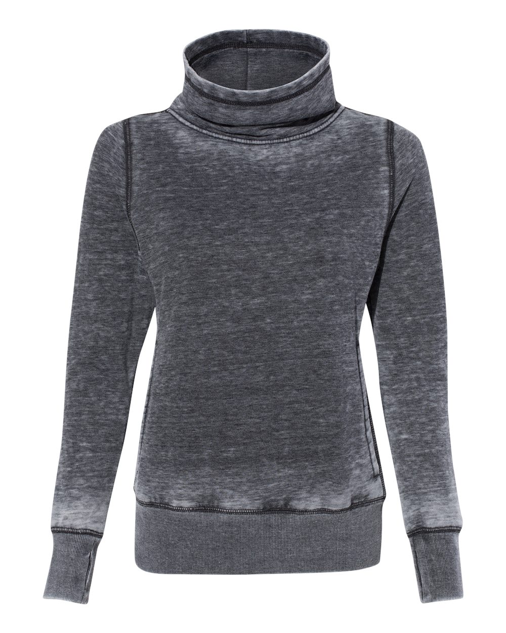 7 oz./yd_, 55/45 cotton/polyester burnout fleece Acid washed with silicone finish Self-fabric cowl neck Welt pockets along side gusset 2x1 ribbed cuff...