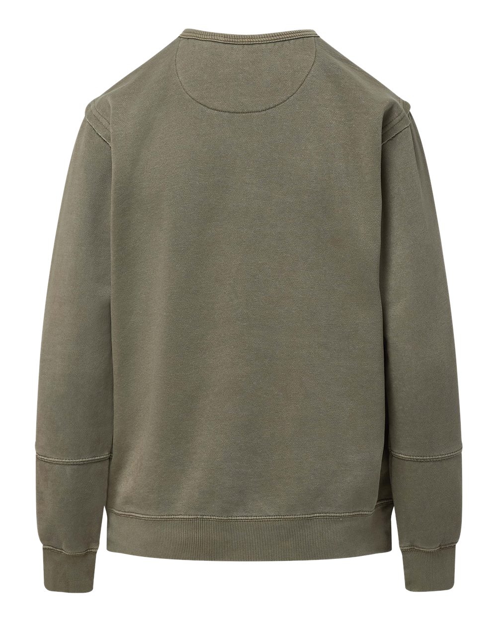 8.3 oz./yd_, 80/20 cotton/polyester Garment-dyed finish Classic fit Half-moon patch at back neck Cross body and forearm seams Raw edge armhole...