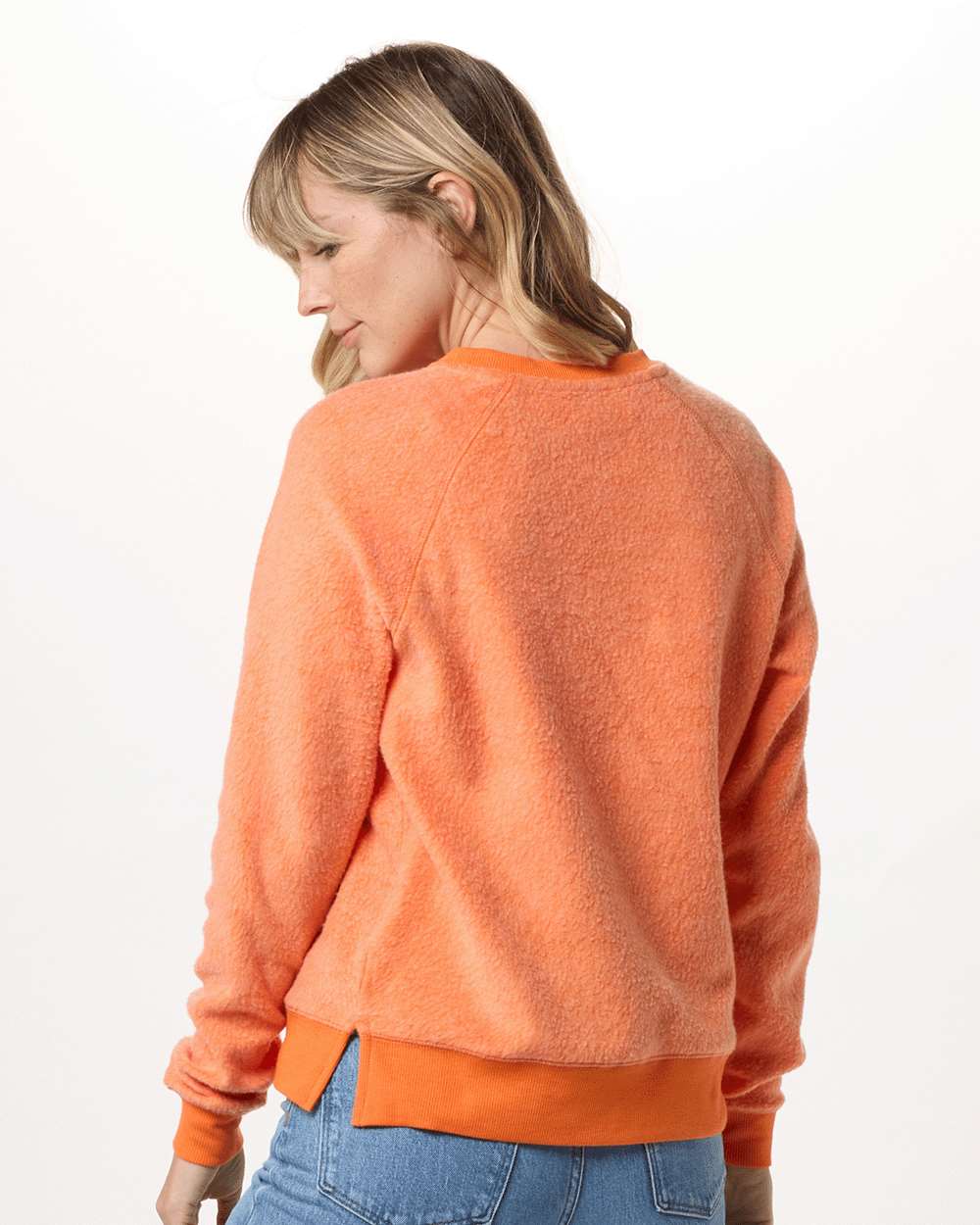 6.5 oz./yd_, 60/40 cotton/polyester, reverse fleece Snuggly soft Boxy fit Rib knit at crewneck, cuffs and bottom hem Bottom side vents