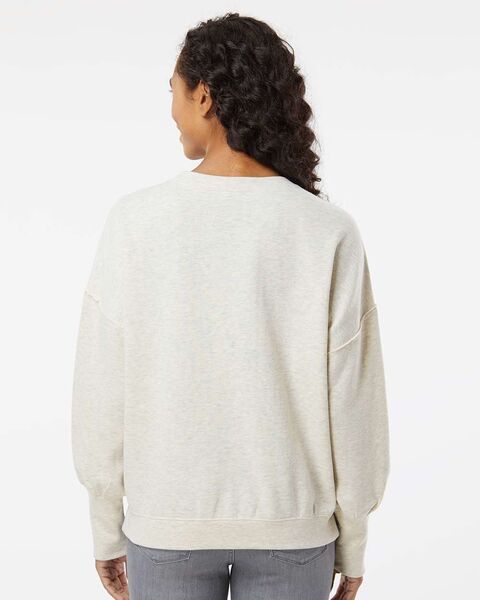7 oz./yd_, 65/35 cotton/polyester fleece Boxy fit Super soft sueded finish Ribbed collar Drop shoulder detail Ribbed cuffs and waistband