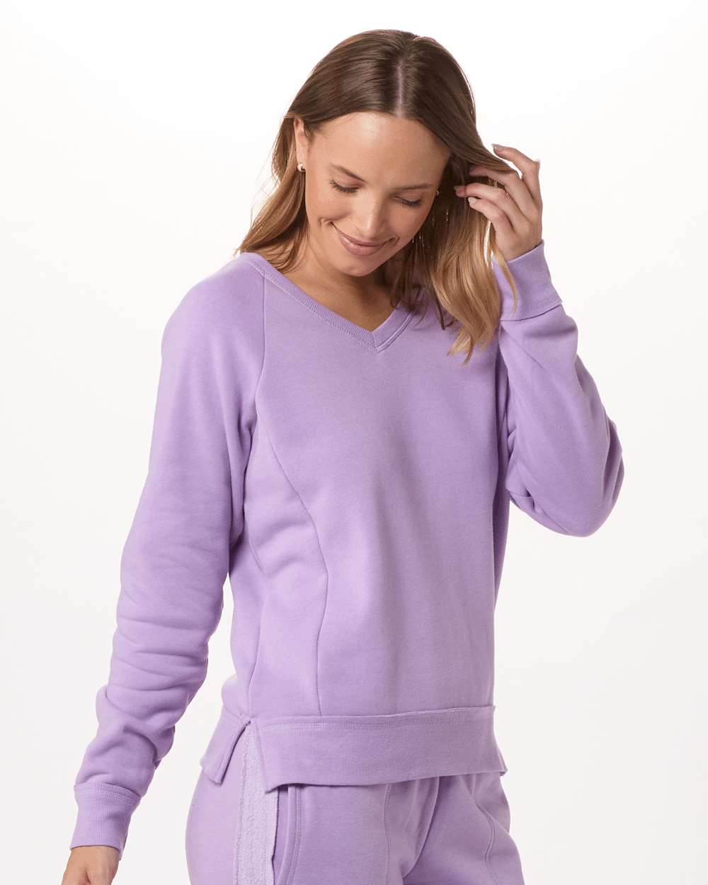 • Ribbed bottom band and sleeve cuff with raw edge seams