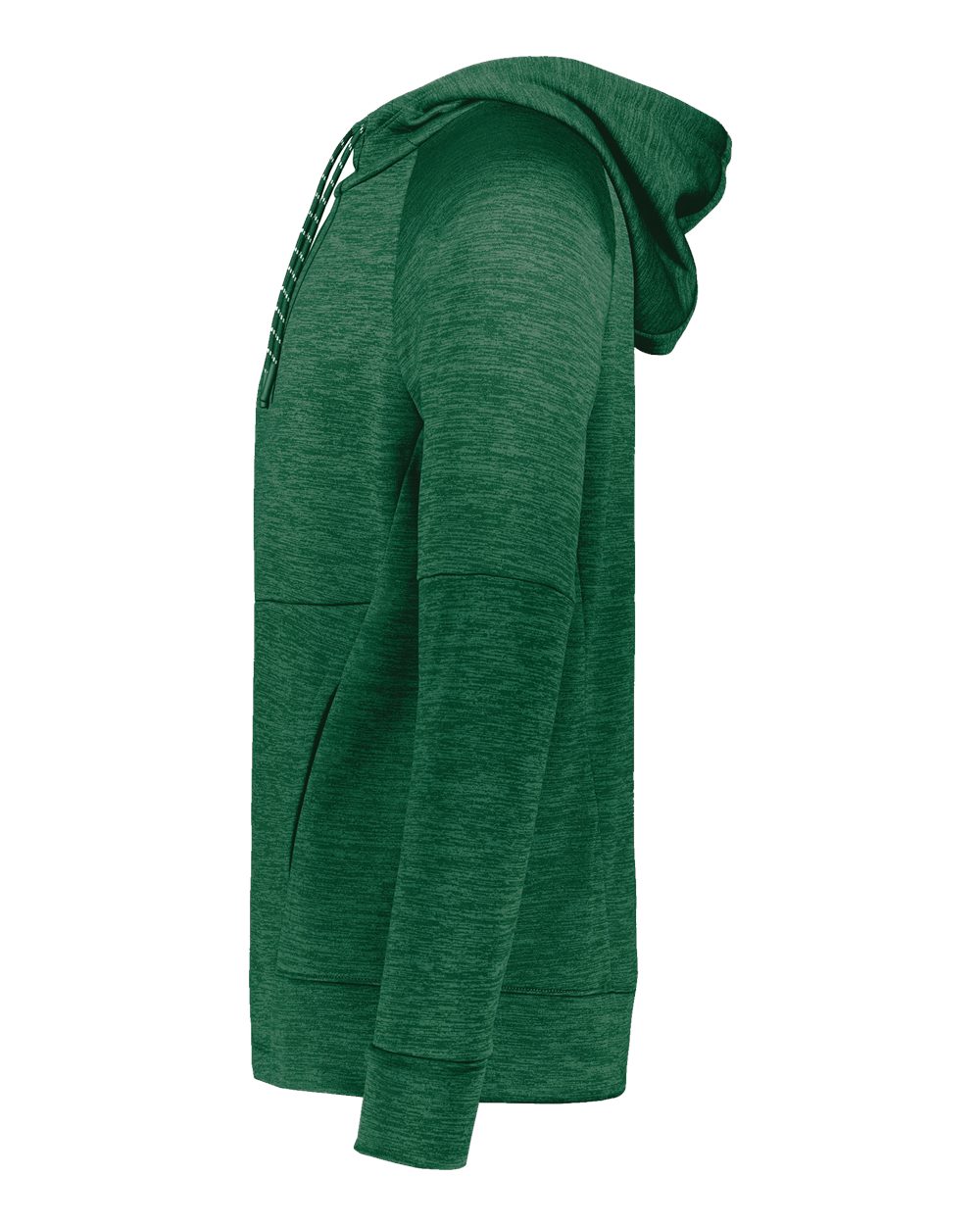 6.8 oz./yd_, 100% polyester mŽlange fleece Scuba shaped three-piece hood with color-contrast lining and drawcord Pouch pocket with internal mesh...