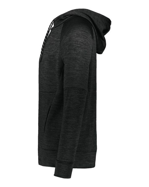 6.8 oz./yd_, 100% polyester mŽlange fleece Scuba shaped three-piece hood with color-contrast lining and drawcord Pouch pocket with internal mesh...