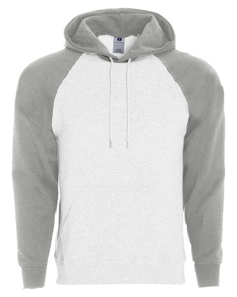 9 oz./yd_, 50/50 cotton/polyester smooth athletic fleece Self-lined hood Drawcord Pouch pocket Raglan sleeves Ribbed-knit cuffs and waistband Woven...
