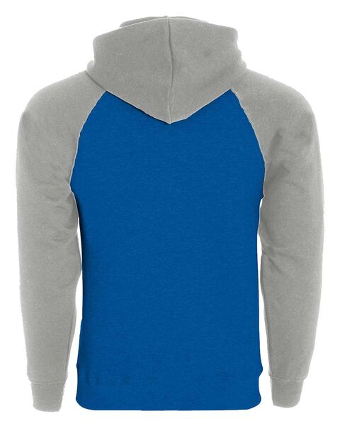 9 oz./yd_, 50/50 cotton/polyester smooth athletic fleece Self-lined hood Drawcord Pouch pocket Raglan sleeves Ribbed-knit cuffs and waistband Woven...
