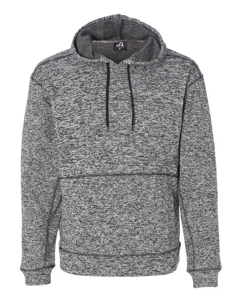 7 oz./yd_, 100% spun polyester fleece Solid-color drawcord Underarm and side gusset panels Pouch pocket Self-fabric cuffs and waistband