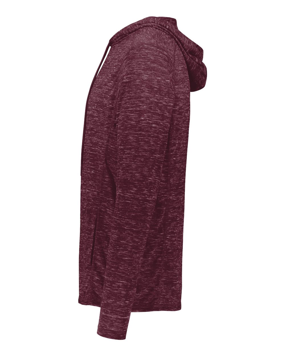 95/5 recycled polyester/cotton Moisture-management properties Three-panel hood with drawcord Set-in sleeves Pouch pocket Tag-free label