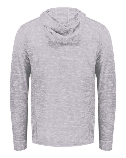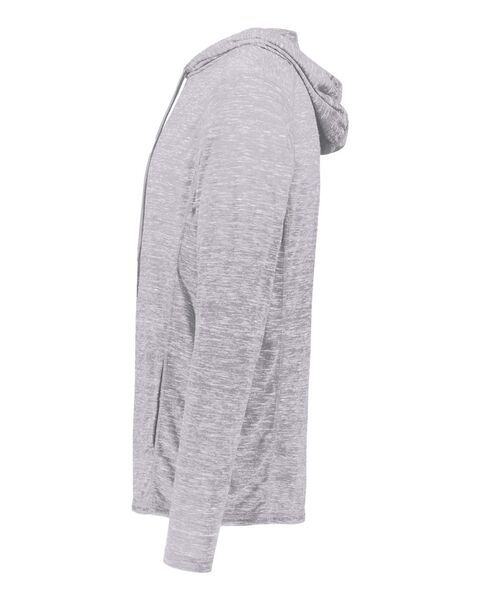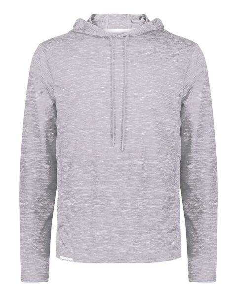 95/5 recycled polyester/cotton Moisture-management properties Three-panel hood with drawcord Set-in sleeves Pouch pocket Tag-free label