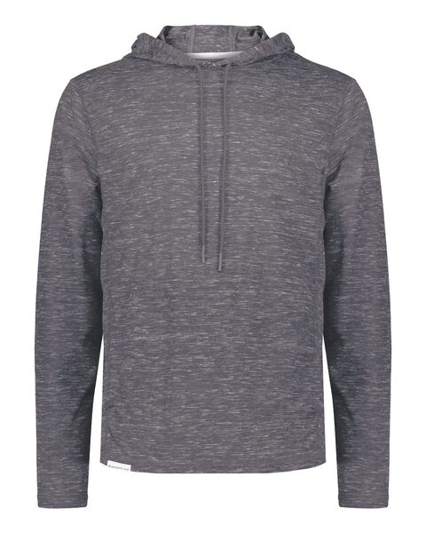 95/5 recycled polyester/cotton Moisture-management properties Three-panel hood with drawcord Set-in sleeves Pouch pocket Tag-free label