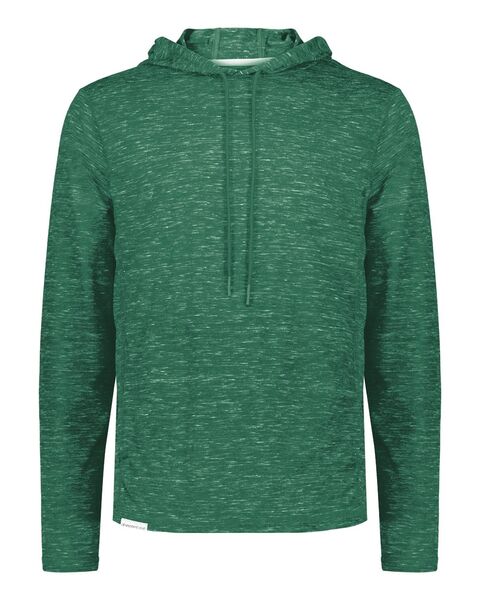 95/5 recycled polyester/cotton Moisture-management properties Three-panel hood with drawcord Set-in sleeves Pouch pocket Tag-free label