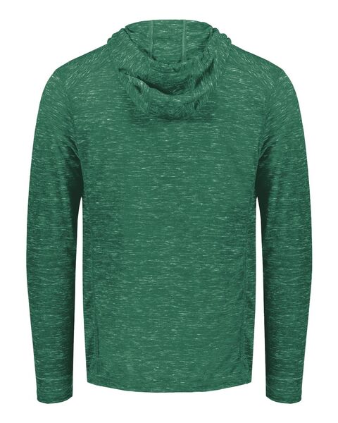 95/5 recycled polyester/cotton Moisture-management properties Three-panel hood with drawcord Set-in sleeves Pouch pocket Tag-free label