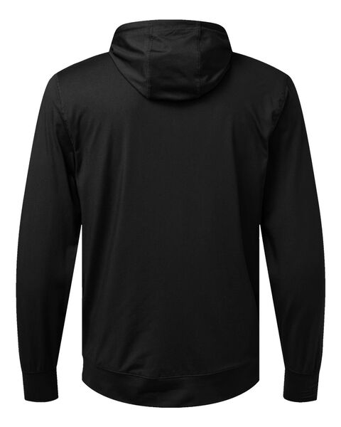 6.3 oz./yd_, 89/11 recycled polyester/spandex Moisture-management properties 3-panel hood with drawcord Side seam pockets Set-in sleeves Self-fabric...