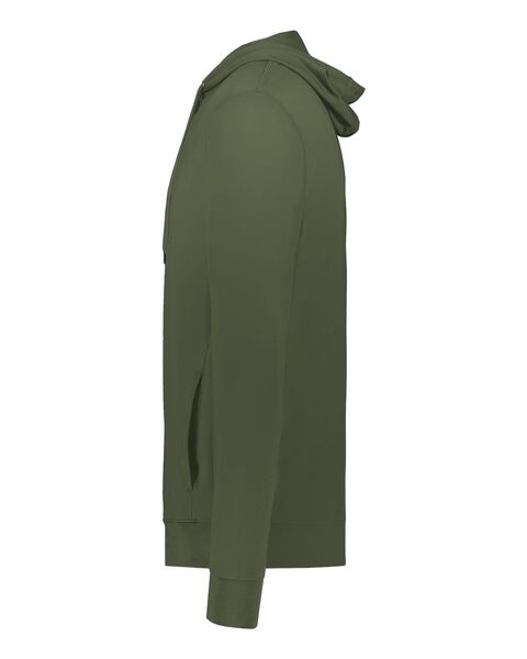 6.3 oz./yd_, 89/11 recycled polyester/spandex Moisture-management properties 3-panel hood with drawcord Side seam pockets Set-in sleeves Self-fabric...