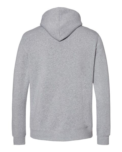 7.5 oz./yd_, 55/45 cotton/polyester fleece Coverstitched throughout Double layer jersey gaiter attached to neck opening Pouch pocket Tear away label