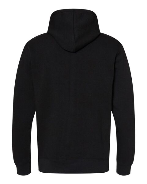 7.5 oz./yd_, 55/45 cotton/polyester fleece Coverstitched throughout Double layer jersey gaiter attached to neck opening Pouch pocket Tear away label