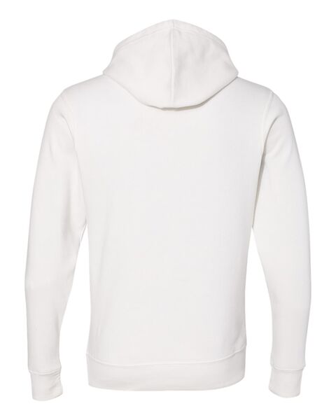 7.5 oz./yd_, 55/39/6 cotton/polyester/rayon triblend fleece Coverstitched throughout Off-white drawcord Pouch pocket Tear away label
