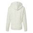 7.5 oz./yd_, 55/39/6 cotton/polyester/rayon triblend fleece Coverstitched throughout Off-white drawcord Pouch pocket Tear away label