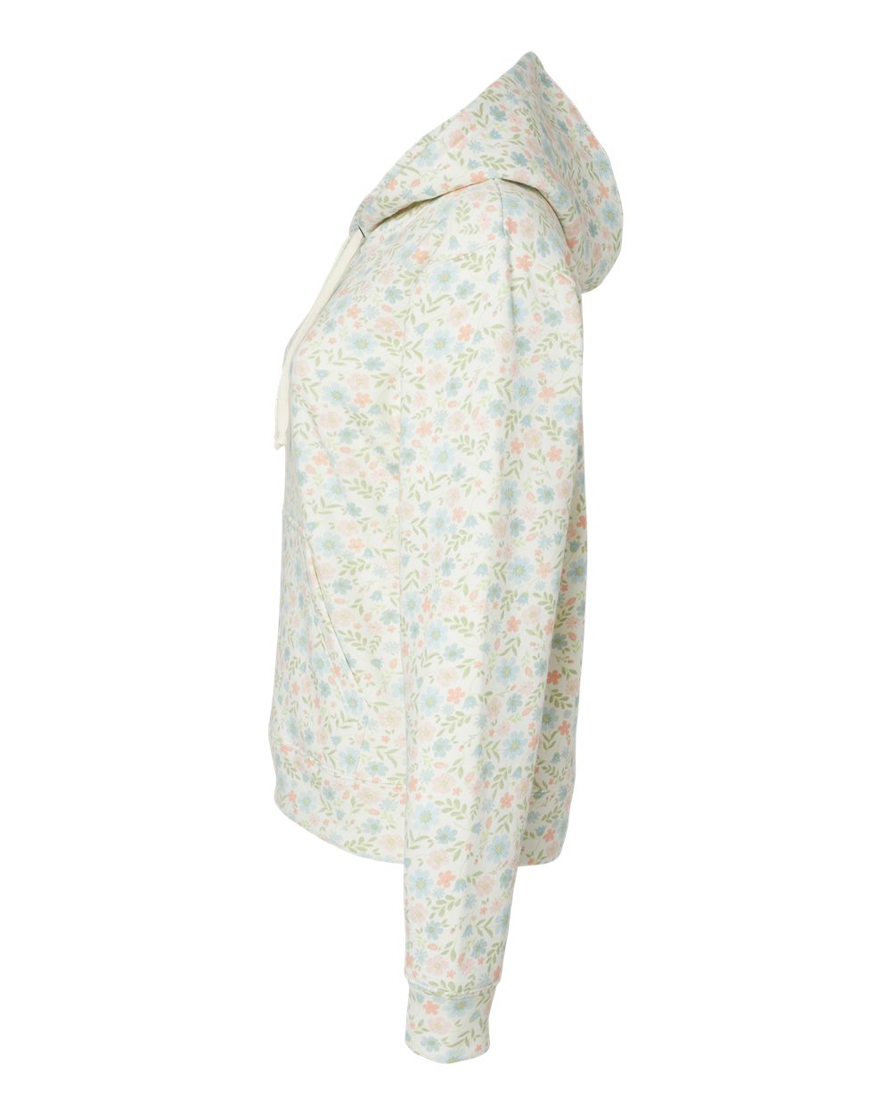 7.5 oz./yd_, 55/39/6 cotton/polyester/rayon triblend fleece Coverstitched throughout Off-white drawcord Pouch pocket Tear away label