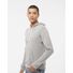 7.5 oz./yd_, 55/39/6 cotton/polyester/rayon triblend fleece Coverstitched throughout Off-white drawcord Pouch pocket Tear away label