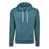 7.5 oz./yd_, 55/39/6 cotton/polyester/rayon triblend fleece Coverstitched throughout Off-white drawcord Pouch pocket Tear away label