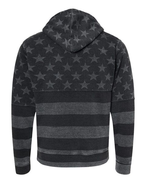 7.5 oz./yd_, 55/39/6 cotton/polyester/rayon triblend fleece Coverstitched throughout Off-white drawcord Pouch pocket Tear away label