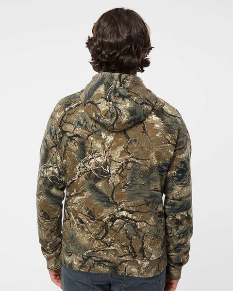 7.5 oz./yd_, 55/39/6 cotton/polyester/rayon triblend fleece Coverstitched throughout Off-white drawcord Pouch pocket Tear away label