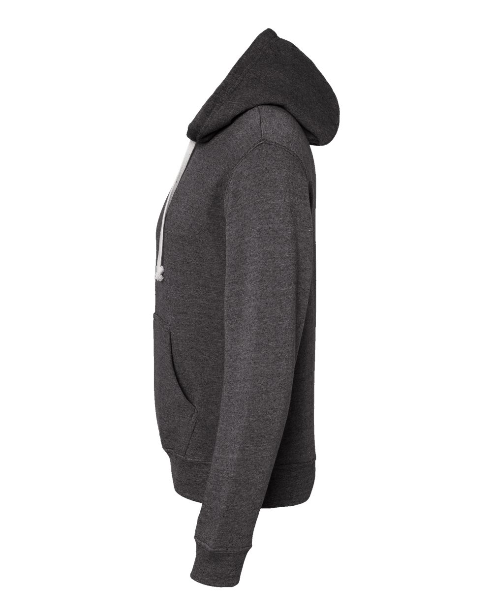 7.5 oz./yd_, 55/39/6 cotton/polyester/rayon triblend fleece Coverstitched throughout Off-white drawcord Pouch pocket Tear away label