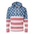 7.5 oz./yd_, 55/39/6 cotton/polyester/rayon triblend fleece Coverstitched throughout Off-white drawcord Pouch pocket Tear away label