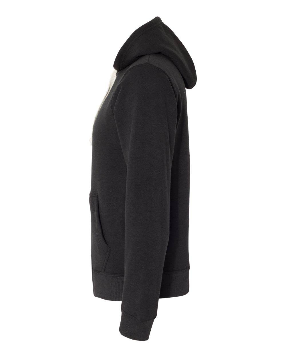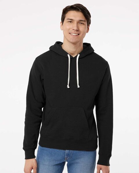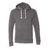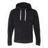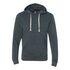 7.5 oz./yd_, 55/39/6 cotton/polyester/rayon triblend fleece Coverstitched throughout Off-white drawcord Pouch pocket Tear away label