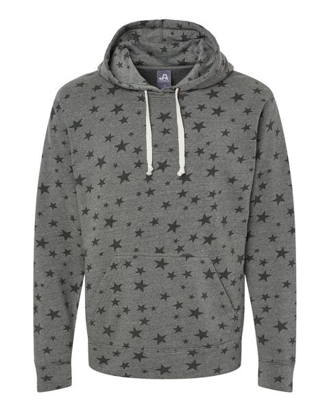 7.5 oz./yd_, 55/39/6 cotton/polyester/rayon triblend fleece Coverstitched throughout Off-white drawcord Pouch pocket Tear away label