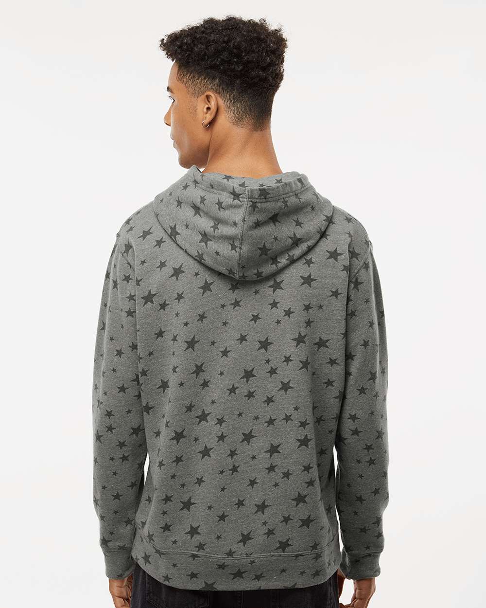 7.5 oz./yd_, 55/39/6 cotton/polyester/rayon triblend fleece Coverstitched throughout Off-white drawcord Pouch pocket Tear away label