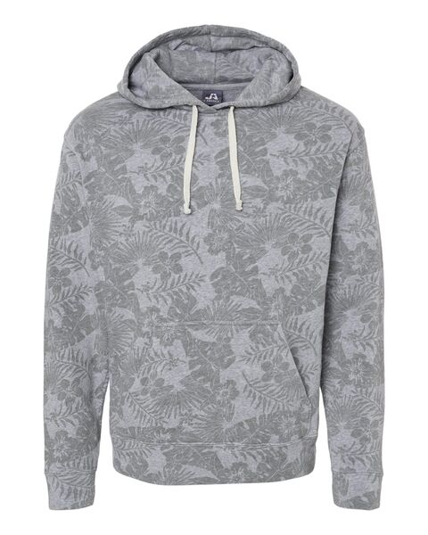 7.5 oz./yd_, 55/39/6 cotton/polyester/rayon triblend fleece Coverstitched throughout Off-white drawcord Pouch pocket Tear away label