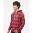 7.5 oz./yd_, 55/39/6 cotton/polyester/rayon triblend fleece Coverstitched throughout Off-white drawcord Pouch pocket Tear away label