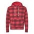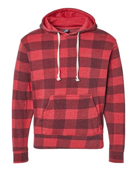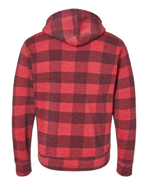 7.5 oz./yd_, 55/39/6 cotton/polyester/rayon triblend fleece Coverstitched throughout Off-white drawcord Pouch pocket Tear away label