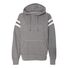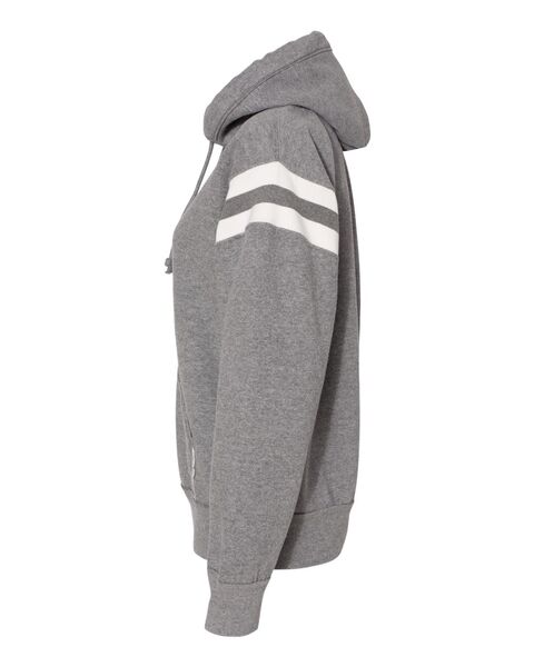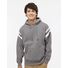 9.3 oz./yd_, 60/40 cotton/polyester enzyme-washed fleece Yarn-dyed striped trim on shoulders Set-in sleeves Pouch pocket