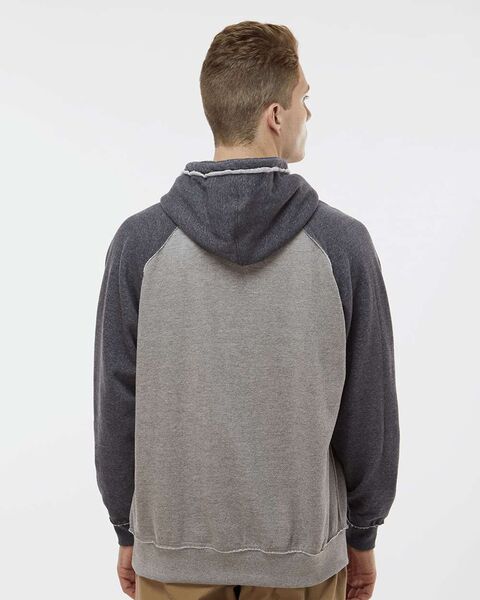 9.5 oz./yd_, enzyme-washed 80/20 cotton/polyester heathered fleece Flatlock-stitched throughout Contrast-color hood, drawcord and sleeves Raglan sleeves...