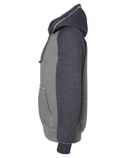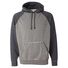 9.5 oz./yd_, enzyme-washed 80/20 cotton/polyester heathered fleece Flatlock-stitched throughout Contrast-color hood, drawcord and sleeves Raglan sleeves...