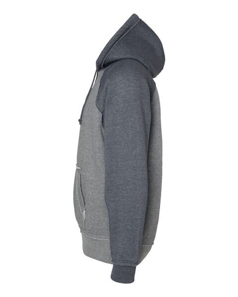 9.5 oz./yd_, enzyme-washed 80/20 cotton/polyester heathered fleece Flatlock-stitched throughout Contrast-color hood, drawcord and sleeves Raglan sleeves...