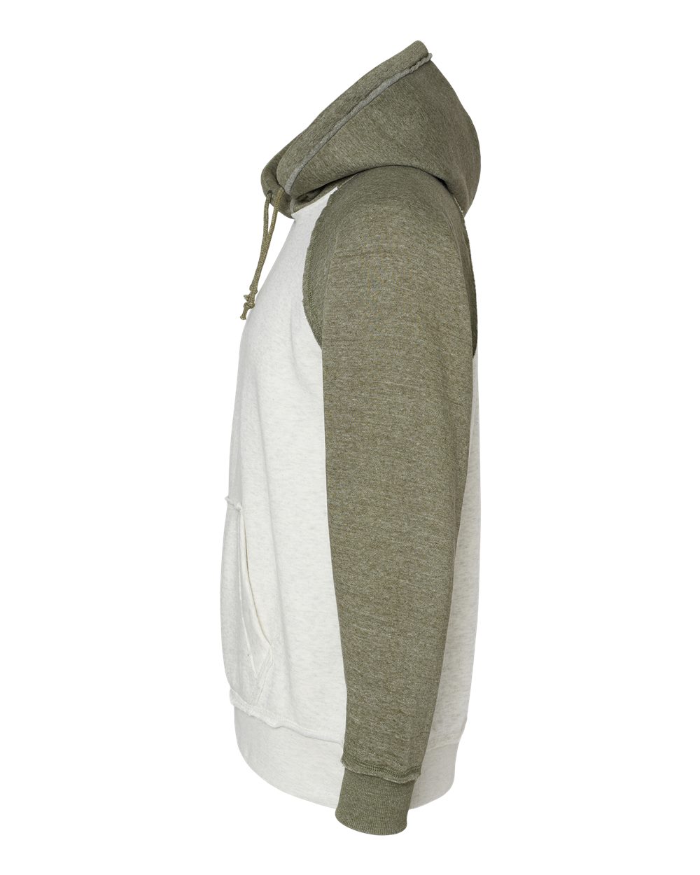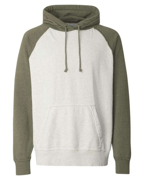 9.5 oz./yd_, enzyme-washed 80/20 cotton/polyester heathered fleece Flatlock-stitched throughout Contrast-color hood, drawcord and sleeves Raglan sleeves...