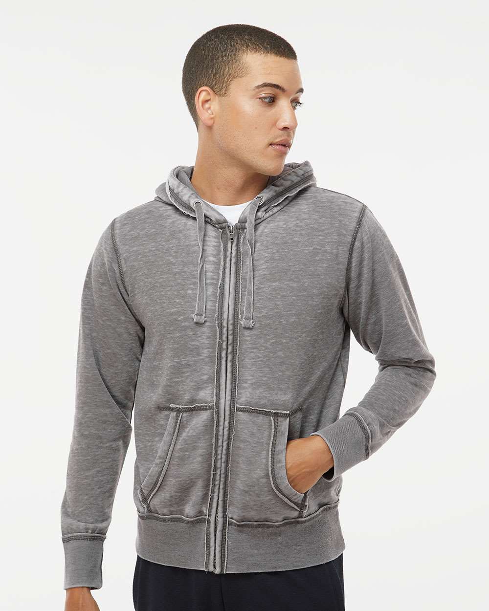 7 oz./yd_, 55/45 cotton/polyester burnout fabric Acid washed with silicone finish Flatlock stitching throughout Dyed-to-match drawcord Antique...